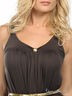Детали: верх полочки декорирован складками, на талии шлевки с золотистым ремешком