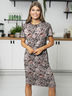 Комфортное трикотажное домашнее платье. Втачной рукав, огкруглый вырез горловины и прямой силуэт.