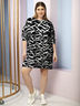 Платье свободного силуэта выполнено из трикотажного полотна, спущенная линия плеча, Круглый вырез горловины.Длинный рубашечный рукав на манжете. Низ на притачном поясе. Длина миди.
