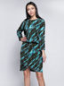 Трикотажное платье из кулирного вискозного полотна. Прямой силуэтс комфортной резинкой на талии и юбкой с запахом. Удобство и лаконичность кроя в сочетании с трендовым освежающим принтом.