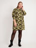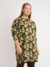 Платье свободного силуэта из мягкого трикотажа с цветочным принтом., спущенная линия плеча, Круглый вырез горловины.Длинный рубашечный рукав на манжете. Низ на притачном поясе. Длина миди.