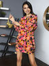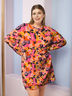Платье свободного силуэта выполнено из трикотажного полотна, спущенная линия плеча, Круглый вырез горловины.Длинный рубашечный рукав на манжете. Низ на притачном поясе. Длина миди.