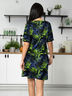 Оригинальное платье для дома и отдыха их принтованного хлопкового полотна. Платье прямого силуэта со спущенным рукавом. По талии отрезное с легкой сборкой на резинку и дополнено узким поясом.