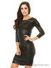 Эффектное платье облегающего силуэта с округлым вырезом горловины и рукавами 3/4 станет отличным дополнением к Вашему гардеробу. Модель украшена на плечиках паетками.