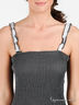 Детали: тонкие бретельки дополнены рюшами, широкий отрезной топ-резинка, низ украшен многослойными воланами