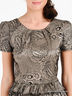 Детали: круглый вырез, короткие рукава, сзади застегивается на молнию, низ изделия украшен многослойными рюшами, талия подчеркнута элегантным поясом-ремнем