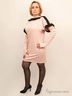 Оригинальное платье прямого силуэта. Выполнено из приятного на ощупь материала. Вырез горловины "щель". Короткие широкие рукава. Модель дополнена контрастным кантом черного цвета.