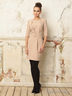 Замечательное платье с рукавами 3/4 и округлым вырезом горловины. Модель приталенного покроя, дополненная на талии декоративным элементом. Спереди изделие украшено эффектной драпировкой. Отличный вариант как на каждый день, так и для создания праздничного образа.