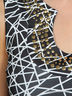 Платье приталенного покроя с короткими рукавами и фигурным вырезом горловины. Модель выполнена из яркой, принтованной ткани контрастной расцветки. Изделие прекрасно подойдет как для повседневной носки, так и для создания незабываемого праздничного образа.