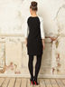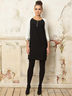Стильное платье с округлым вырезом горловины и рукавами 3/4. Модель выполнена в контрастной расцветке, дополнена декоративными элементами на рукавах. Короткая застежка на молнию спереди. Отличный способ создать женственный образ и подчеркнуть Вашу индивидуальность.