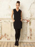 Платье свободного покроя без рукавов. Округлый вырез горловины. Плечи украшены декоративными элементами. По бокам модель дополнена втачными карманами. Отличный вариант на каждый день.