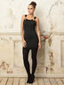 Элегантное платье на широких бретелях с округлым вырезом горловины. Изделие превосходно подчеркивает достоинства фигуры. Платье можно носить поверх джемпера, водолазки и практически любого топа. Отличный вариант на каждый день.