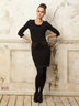 Замечательное платье с длинными рукавами и округлым вырезом горловины. Изделие приталенного покроя выполнено в универсальной расцветке. Спереди модель дополнена декоративными элементами. Отличный вариант на каждый день.