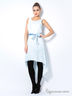 Платье без рукавов с округлым вырезом горловины. Удлиненный покрой изделия сзади. Талию подчеркивает изысканный пояс. Отличный вариант на каждый день.