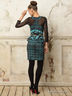Стильное платье с округлым вырезом горловины и длинными рукавами. Модель выполнена в контрастной расцветке, дополнена декоративным поясом на талии. Застежка на молнию на спине. Отличный способ создать женственный образ и подчеркнуть Вашу индивидуальность.