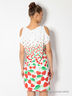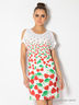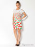 Оригинальное платье приталенного покроя с короткими рукавами и округлым вырезом горловины. Изделие выполнено из принтованной ткани контрастной расцветки. Отличный вариант для создания яркого и стильного гардероба.