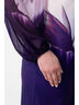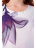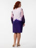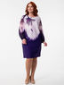Восхитительное платье прилегающего силуэта из текстильного полотна бело-фиолетового цвета. Круглый вырез изделия обработан внутренней обтачкой. Втачные рукава выполнены из легкого шифона. Длина изделия по спинке от плечевого шва до низа изделия — 107 см.