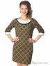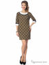 Очаровательное платье А-силуэта из плотного трикотажного полотна. Круглый вырез изделия подчеркнут контрастной окантовкой и украшен декоративным элементом. По низу втачных рукавов — контрастная окантовка и однотонные манжеты с разрезами.