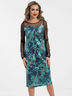 Роскошное платье прилегающего силуэта черно-бирюзового цвета. Отрезная кокетка и втачные рукава выполнены из прозрачной сетки. Круглый вырез изделия обработан внутренней бейкой. Перед изделия выполнен из декоративного полотна с пайетками. По спинке изделия выполнен разрез. Рекомендуем сочетать платье с юбкой Ю4-4324, юбку можно приобрести отдельно. Длина изделия по спинке от плечевого шва до низа изделия — 108 см. Рост модели - 170 см.