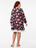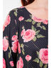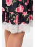Романтичное платье полуприлегающего силуэта из трикотажного полотна черно-розового цвета. Круглый вырез изделия обработан внутренней обтачкой. Втачные рукава дополнены сборкой и обработаны окантовкой. По низу изделия кружево. Длина изделия по спинке от плечевого шва до низа изделия — 97 см.