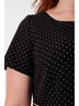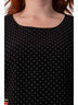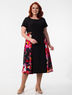 Яркое платье полуприлегающего силуэта из текстильного полотна черно-розового цвета. Круглый вырез изделия обработан внутренней обтачкой. Платье с втачными рукавами. Отрезная юбка дополнены клиньями из контрастного полотна. Длина изделия по спинке от плечевого шва до низа изделия — см.