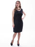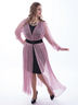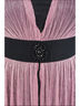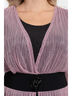 Шикарное двойное платье полуприлегающего силуэта из трикотажного полотна. Верхняя часть - накидка выполнена из трикотажного полупрозрачного полотна розового цвета. Втачные рукава дополнены сборками. Линию талии подчеркивает пояс резинка с застежкой на крючки. Пояс украшен декоративным элементом из бусин и страз. Нижняя часть — «маленькое черное платье» полуприлегающего силуэта из трикотажного полотна черного цвета. Круглый вырез изделия обработан внутренней обтачкой.