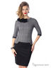 Изысканное платье прилегающего силуэта из плотного трикотажного полотна. Круглый вырез изделия обработан внутренней обтачкой и украшен декоративным элементом. По низу цельнокроеных рукавов — манжеты. Линия бедра подчеркнута декоративными карманами.
