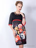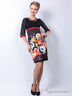 Эффектное платье полуприлегающего силуэта из плотного мягкого трикотажного полотна с купонным рисунком. Круглый вырез изделия украшен декоративным элементом ручной работы. Линия груди элегантно подчеркнута контрастным манжетом. По низу втачных рукавов — м