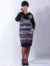 Теплое платье свободного силуэта с втачными рукавами из плотного мягкого трикотажного полотна с купонным рисунком. Круглый вырез украшен декоративным элементом. По низу изделия однотонный манжет. Рекомендуем сочетать платье с крупными серьгами, подвесом и