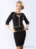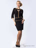 Изысканное платье прилегающего силуэта c V-образным вырезом и втачными рукавами из плотного трикотажного полотна. Перед изделия дополнен контрастной планкой. Платье украшено контрастными окантовками. Аксессуары в комплект не входят.