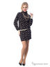 Эффектное платье полуприлегающего силуэта из трикотажного полотна с воротником «стойка» и втачными рукавами. Линия бедра подчеркнута контрастной окантовкой. Юбка изделия выполнена в виде широкого манжета. По низу рукавов контрастная окантовка.