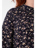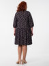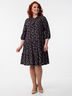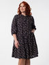 Романтичное платье свободного силуэта из текстильного полотна черно-бежевого цвета. Круглый вырез изделия обработан воротником "стойка". По переду изделия выполнена планка с застежкой на пуговицы. Втачные рукава обработаны окантовкой. По бокам изделия выполнены карманы. По низу изделия широкая оборка. Длина изделия по спинке от плечевого шва до низа изделия — 106 см. Рост фотомодели — 170 см.