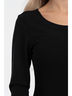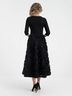 Обворожительное платье полуприлегающего силуэта из трикотажного полотна черного цвета. Круглый вырез изделия обработан внутренней обтачкой. Платье с втачными рукавами и отрезное по линии талии.