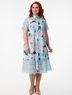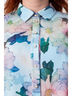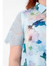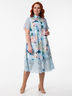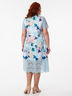Очаровательное платье свободного силуэта из текстильного полотна голубого цвета. Платье с отложным воротником. По переду изделия выполнена планка с застежкой на пуговицы. По низу втачных рукавов и низу изделия кружево. По бокам изделия выполнены карманы. Длина изделия по спинке от плечевого шва до низа изделия — 119 см.