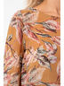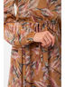 Очаровательное платье полуприлегающего силуэты из шифона коричневого цвета. Круглый вырез изделия обработан внутренней бейкой. Втачные рукава обработаны окантовкой. Платье отрезное по линии талии. Юбка изделия на трикотажном подкладе. В комплект входит пояс. Длина изделия по спинке от плечевого шва до низа изделия — 115 см.