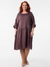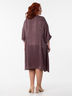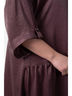 Эффектное платье А-силуэта из текстильного полотна коричневого цвета. Круглый вырез изделия обработан внутренней обтачкой. Платье со спущенной проймой и втачными рукавами. По линии бедра выполнена сборка. Длина изделия по спинке от плечевого шва до низа изделия — см.