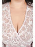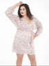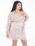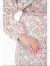 Эффектное платье полуприлегающего силуэта из кружевного полотна розового цвета. По переду изделия выполнен запах. V-образный вырез изделия обработан внутренней бейкой Цельнокроеные рукава обработаны манжетами. Платье дополнено поясом. Длина изделия по спинке от плечевого шва до низа изделия - 98 см. Рост фотомодели — 170 см.
