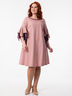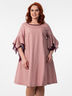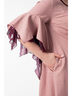 Роскошное платье А-силуэта из текстильного полотна розового цвета. Круглый вырез изделия обработан внешней обтачкой. Втачные рукава дополнены широкими оборками из основного полотна и шифона. Длина изделия по спинке от плечевого шва до низа изделия — см.