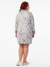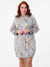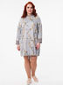 Очаровательное платье свободного силуэта из трикотажного полотна серого цвета. Круглый вырез изделия обработан воротником полустойка. Платье со спущенной проймой и втачными рукавами. По низу изделия выполнена кулиска. Платье дополнено карманами. Длина изделия по спинке от плечевого шва до низа изделия - 95 см. Рост фотомодели — 170 см.