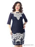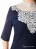 Стильное платье полуприлегающего силуэта из плотного трикотажного полотна с купонным рисунком. Перед изделия украшен декоративной кокеткой из прозрачного кружева. Аксессуары в комплект не входят.