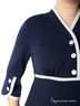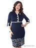 Очаровательное платье прилегающего силуэта из плотного трикотажного полотна с купонным рисунком. Фигурный вырез, линия груди и кокетка переда - подчекнуты контрастной бейкой. Перед изделия украшен декоративными пуговицами. По низу втачных рукавов манжеты.