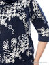 Женственное платье полуприлегающего силуэта из плотного трикотажного полотна сине-белого цвета. Платье с втачными рукавами и воротником «хомут». Линия бедра эффектно подчеркнута втачным манжетом. Аксессуары в комплект не входят.
