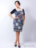 Элегантное платье прилегающего силуэта из трикотажного полотна с купонным рисунком. Круглый вырез украшен декоративным элементом в форме накладного воротничка. Рекомендуем сочетать платье с крупными серьгами и браслетом. Аксессуары можно заказать у нас