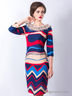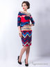 Эффектное платье прилегающего силуэта с втачными рукавами из плотного трикотажного полотна с купонным рисунком. Горловина изделия украшена декоративным элементом с оборками. Рекомендуем сочетать платье с крупными серьгами и браслетом. Аксессуары можно зак
