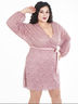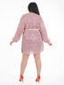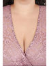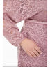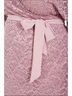 Эффектное платье полуприлегающего силуэта из кружевного полотна сиреневого цвета. По переду изделия выполнен запах. V-образный вырез изделия обработан внутренней бейкой Цельнокроеные рукава обработаны манжетами. Платье дополнено поясом. Длина изделия по спинке от плечевого шва до низа изделия - 98 см. Рост фотомодели — 170 см.