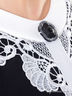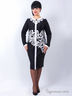 Элегантное платье полуприлегающего силуэта из плотного мягкого трикотажного полотна с купонным рисунком. Перед изделия дополнен контрастной планкой. V-образный вырез украшен декоративной пуговицей. По низу втачных рукавов контрастные манжеты.