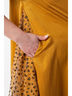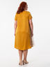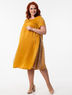Очаровательное платье А-силуэта из текстильного полотна желтого цвета. Круглый вырез изделия обработан внутренней обтачкой. По бокам изделия широкие вставки из декоративной сетки. Длина изделия по спинке от плечевого шва до низа изделия — 110 см. Рост фотомодели — 170 см.