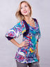 Яркая струящаяся туника приталенного силуэта прекрасно дополнит вечерний гардероб. Округлый вырез горловины с напуском. Длинный рукав на манжете.