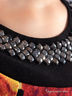 Модное платье приталенного кроя с округлым вырезом горловины. Длинные рукава с манжетами. Изделие выполнено из приятного на ощупь материала. Полочка украшена серебристыми декоративными элементами. Яркий сочный принт. Отличный вариант для торжественных случаев!