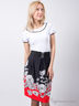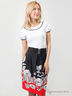 Детали: округлый вырез горловины, короткий рукав "фонарик", талия подчеркнута, слегка расклешенная юбка, принты